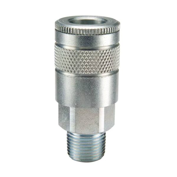 Parker 10 Series male NPTF coupler for secure connections. Heavy-duty, quick disconnect design with manual ball lock. Reliable performance, Made in USA.