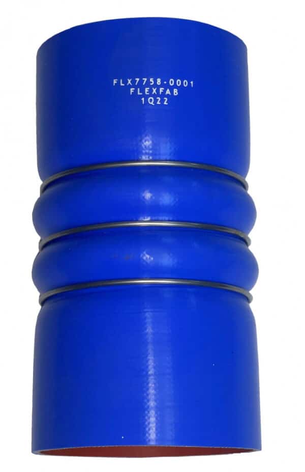 CAC hose features 3-ply silicone coated polyester fabric with stainless steel pressure retention rings for intercooler applications.
