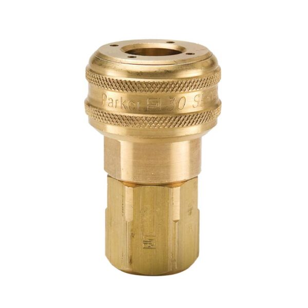Parker B35F 30 Series quick disconnect coupler features brass body construction for durability and efficiency. Ideal for various hydraulic applications. Made in USA.