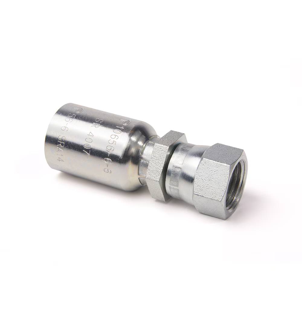 Parker 56 Series 10656-4-3 steel female JIC swivel fitting for thermoplastic hoses. Durable and reliable with various configurations. Made in USA!