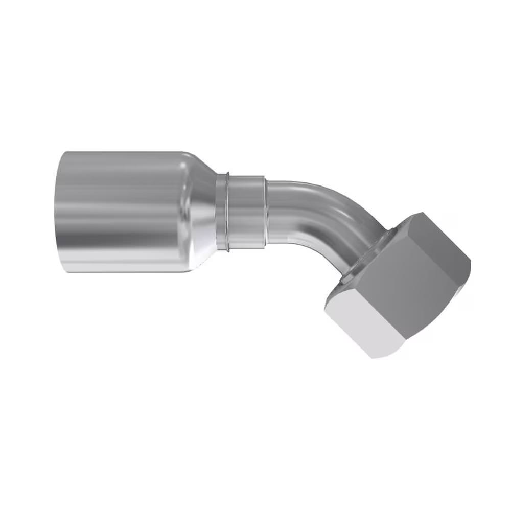 Parker 56 Series 1C456-6-3 stainless steel 45° elbow fitting for thermoplastic hoses. High quality with a swivel feature, made in the USA. Ideal for hydraulic applications.