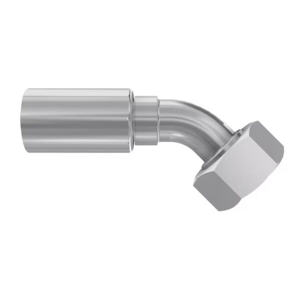 The Parker 56 Series 1CE56-8-4 is a premium quality hydraulic fitting designed to provide reliable connections in high-performance fluid power applications. This metric female light swivel 45 elbow fitting features a 24 cone/O-ring design, ensuring superior sealing capabilities and adaptability with various hydraulic hoses, particularly thermoplastic types.