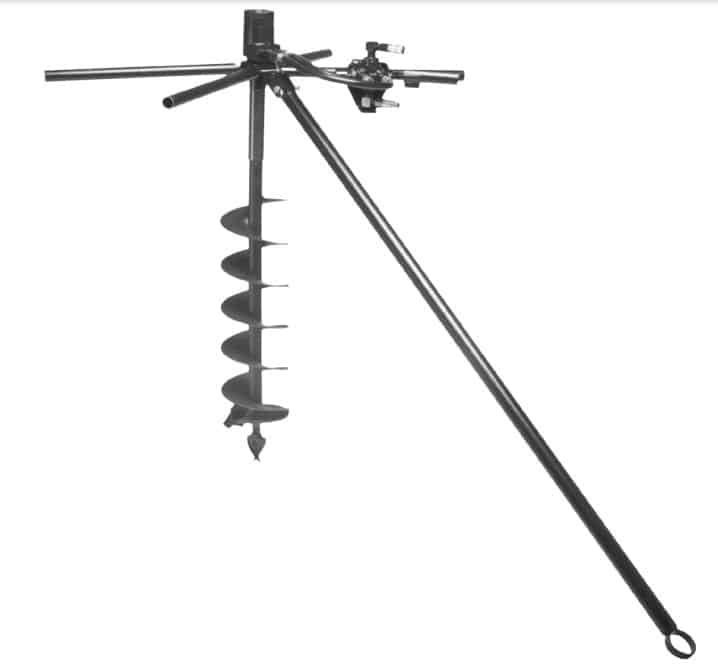 The EA08102A is used for earth boring for posts and poles. It can handle bores up to 18 inches in diameter and 42 inches deep. It can be used with two people with the four handles or can be used with one person with the torque tube attached to a solid object.